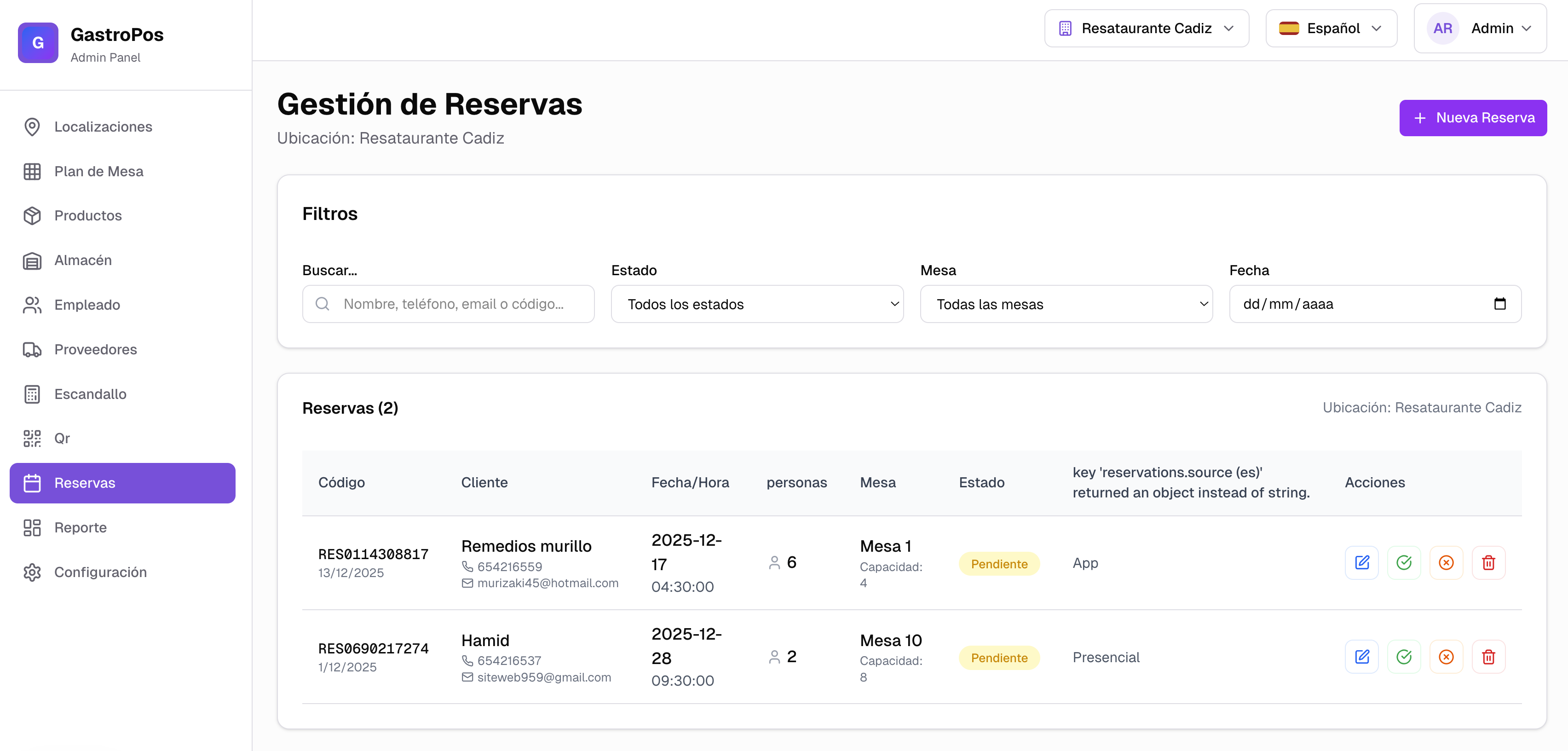 Gestiona Reservas
